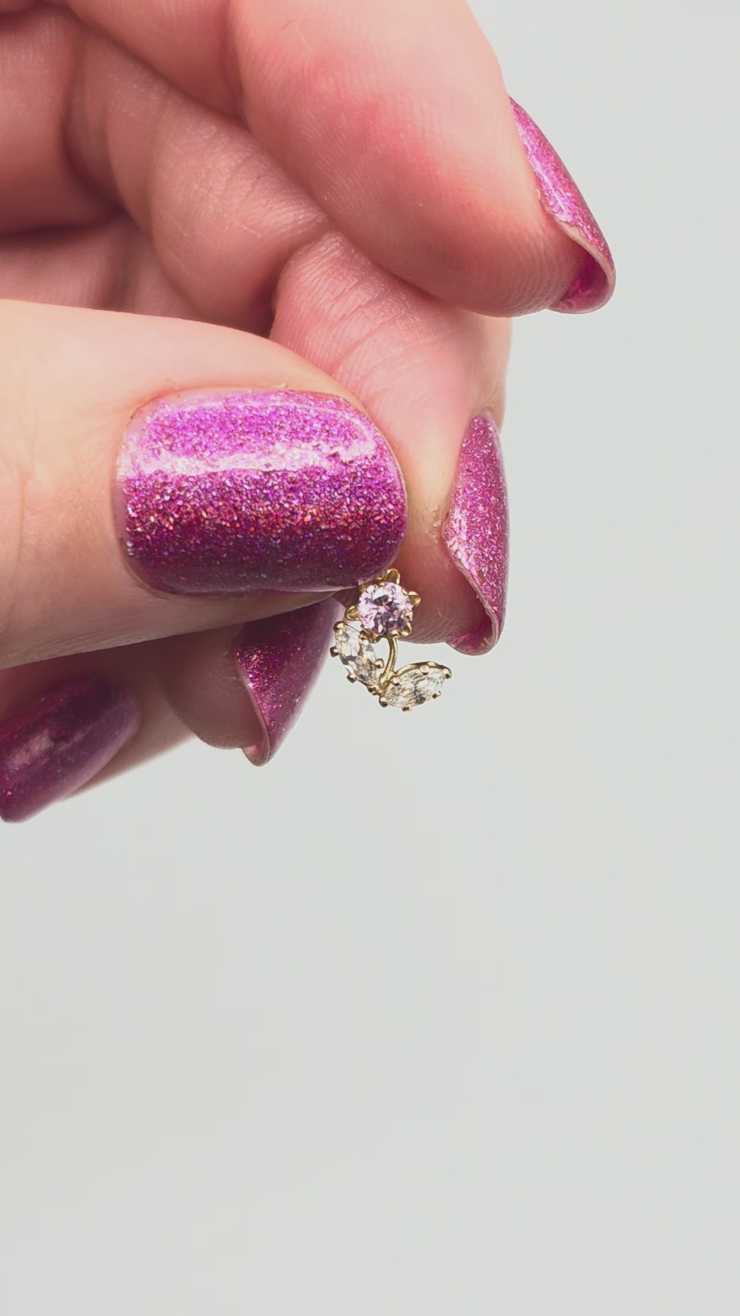 This solid 10K yellow gold flower pendant has a delicate, airy profile with a soft botanical curve đ¸ The design features a round pink cubic zirconia at the center, set in a petal-style prong head that gives it a floral look without being bulky.